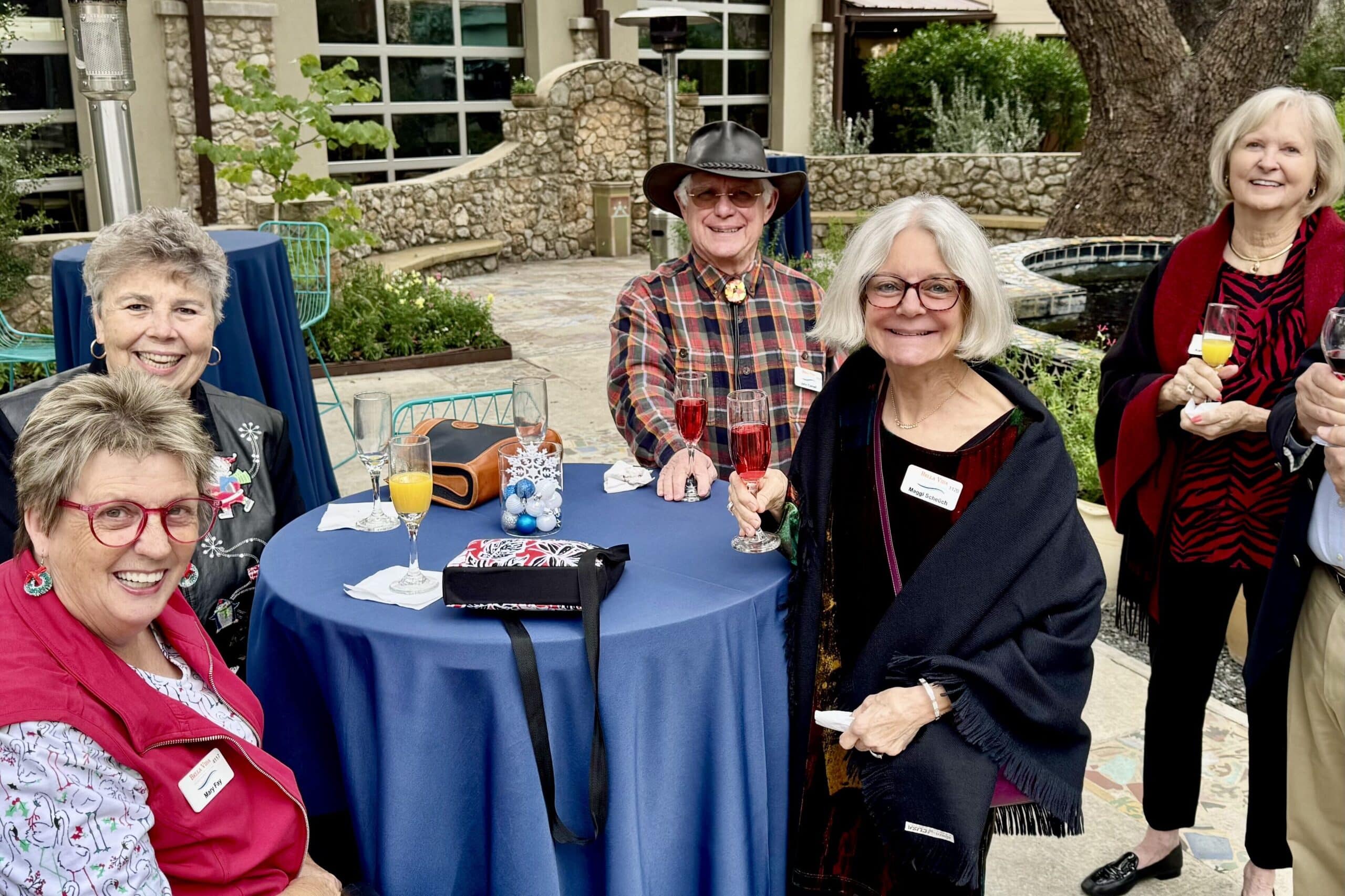 Our annual Holiday celebration was a warm and festive celebration of community! The Veranda’s signature castle façade, courtyard, and lush gardens created a beautiful backdrop for the event. VIPs enjoyed mimosas and other drinks, along with hors d’oeuvres, before gathering for lunch. During the program, Kelly King from the San Antonio Food Bank shared heartfelt reflections on the impact of Bella Vida’s ongoing donations. Afterwards, Tim Mallad offered a lighthearted story from his early days in senior living and reflected on the exciting momentum ahead. Brooks Powell closed with new construction photos and a preview of upcoming events.